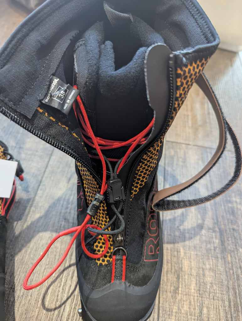 New, without tags or box, never skied. We have the boxes, but for ease of shipping they won't be included. Nice zipper cover over the laces to keep snow out. Ankle brace for a bit more control over...