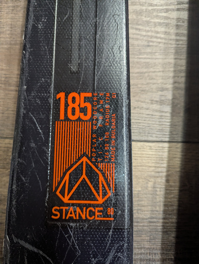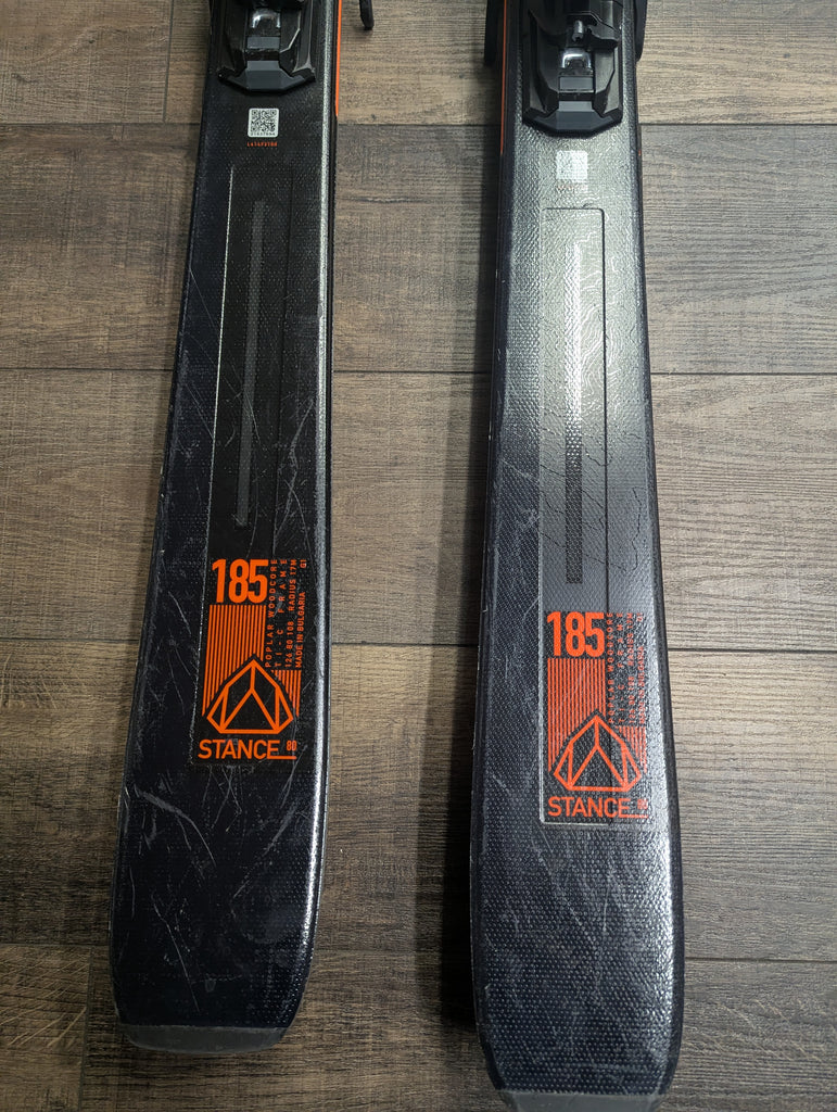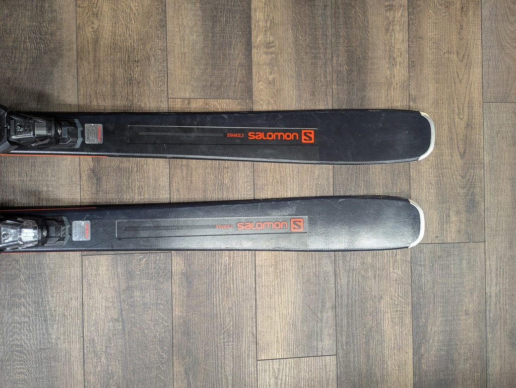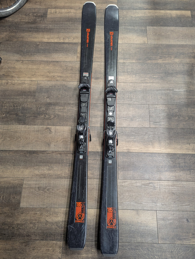 Salomon Stance 80 all mountain rocker skis with bindings, 185cm, Grip Walk