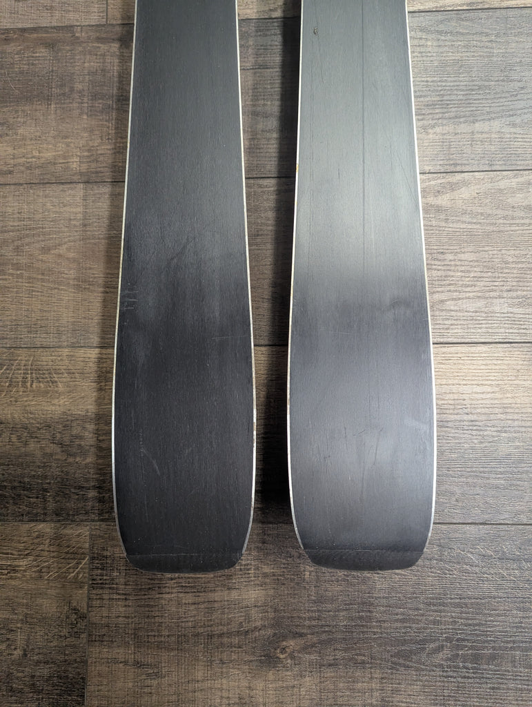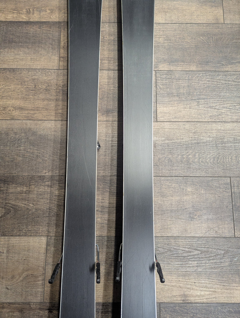 Skis are in very good used condition. Some typical wear and tear, but edges and bases are in good shape.