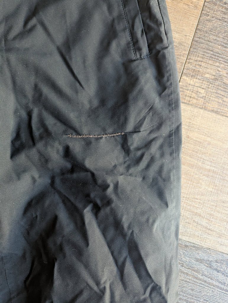 There is one repair on the front of the left leg.