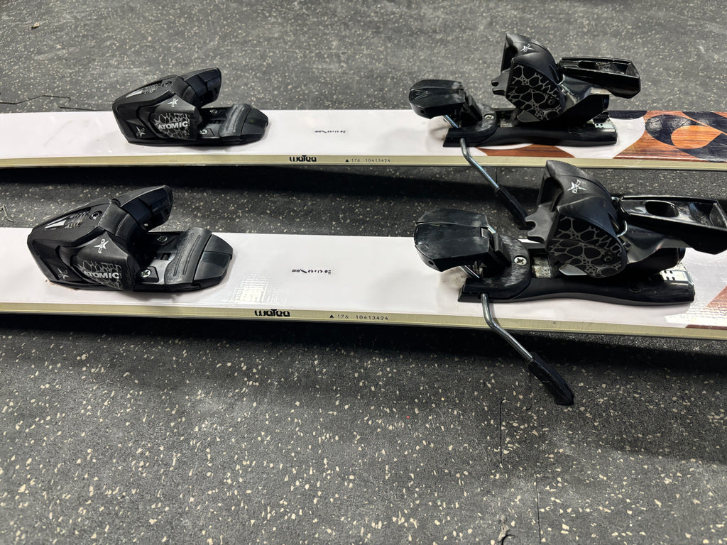 Atomic FFG Bindings, Din adjustable from 4-12. Let us know if your interested and we can figure out what BSLs can fit without remounting. **These bindings are getting to be on the older side and might not be indemnified, so be warned that shops might not work on these**.