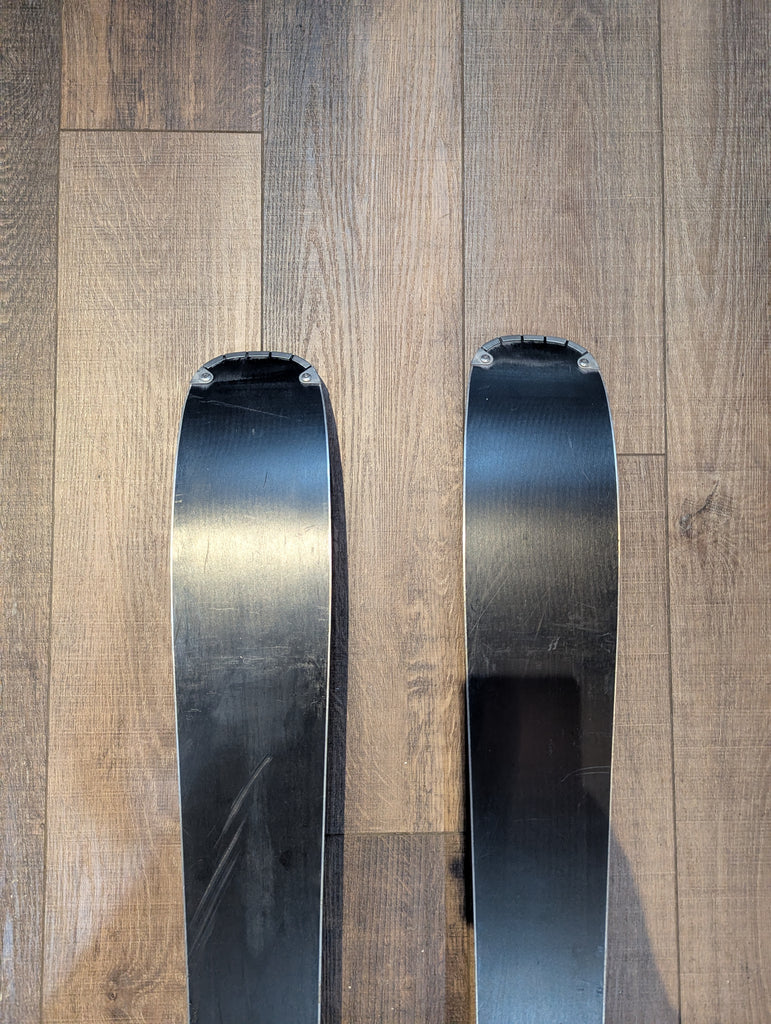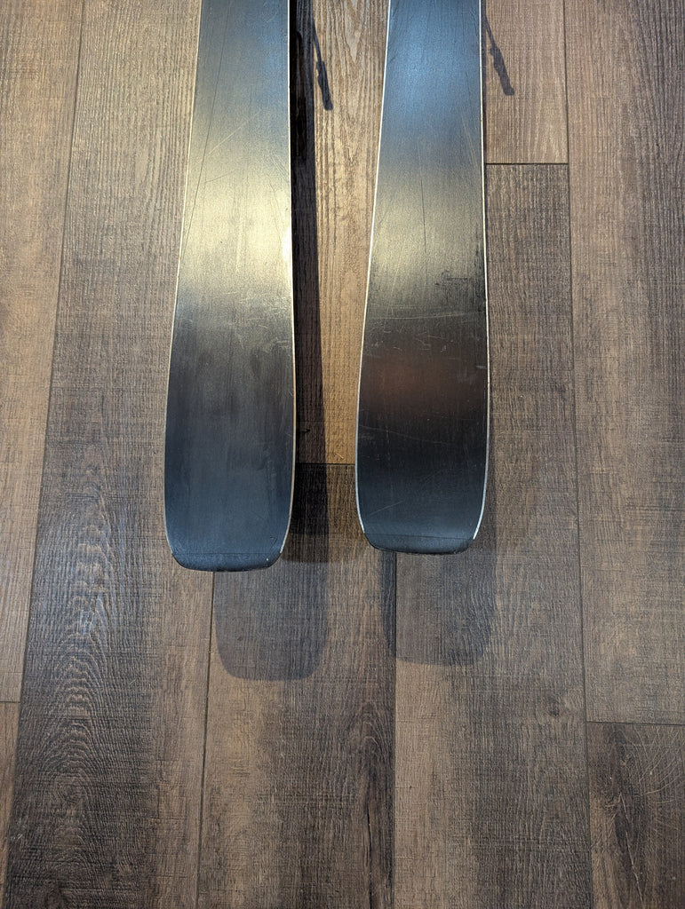 Skis are in very good used condition. Some typical wear and tear, but edges and bases are in good shape.