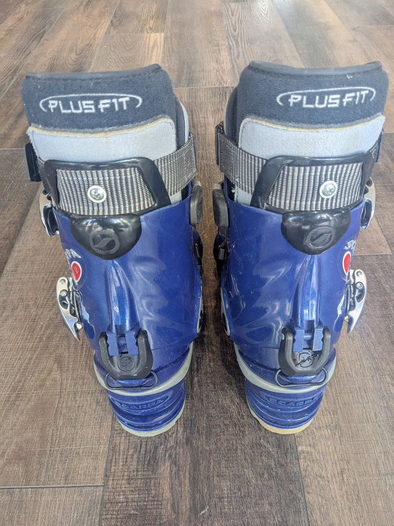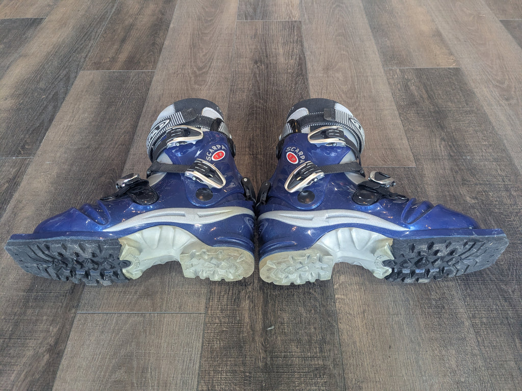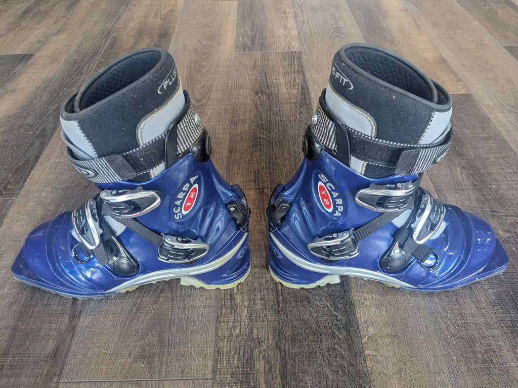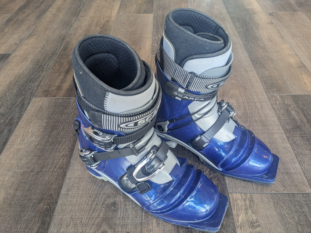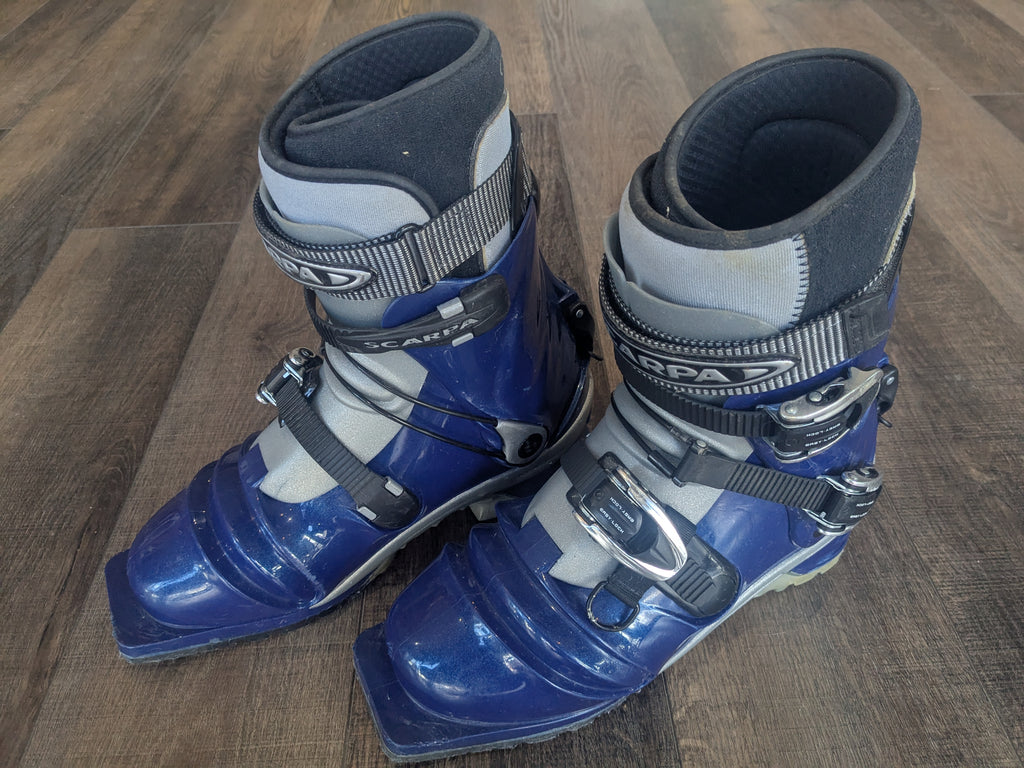 Telemark boots in good used shape. Some typical wear and tear, but minimal.